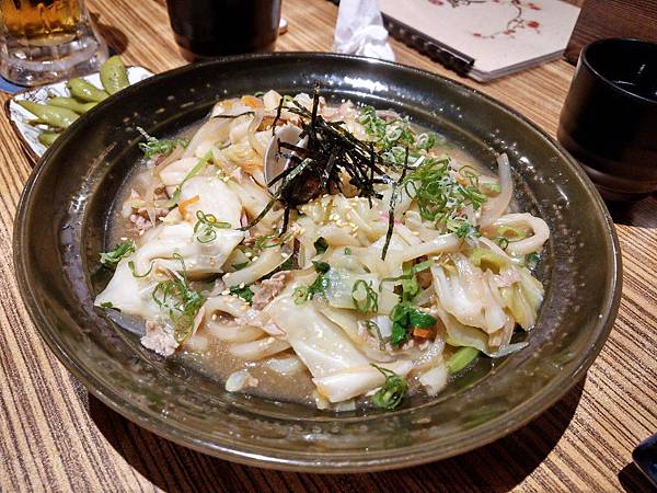 應該算是什錦烏龍吧,有蛤蠣、青菜、豬肉片。烏龍麵還算Q,咬起來沒有粉味(一般超商賣的烏龍麵條,咬起來有一股粉味,且不會Q),味道偏鹹。