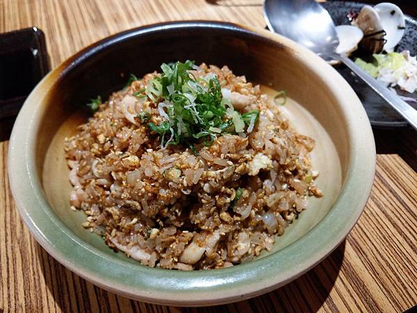 粒粒分明的米飯,不像一般台式料理烹調的軟綿,搭配碎末洋蔥,雞腿肉,以日式醬油打底去炒,又配合明太子本身的鹹度,吃起來不會太鹹也不會無味。視覺也許一般般,但味蕾卻是大大滿足喲 😋