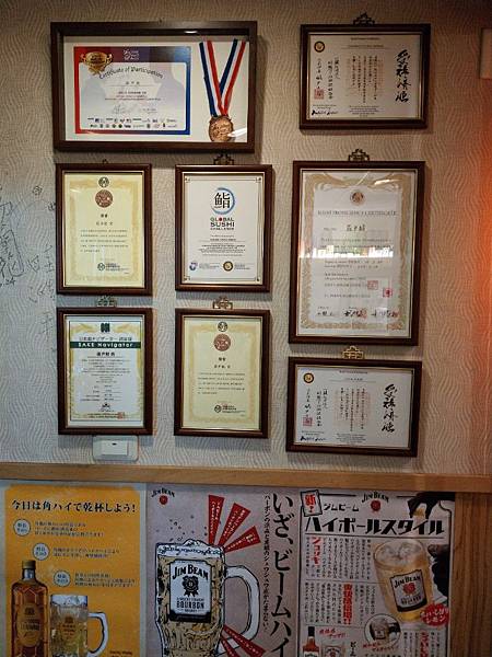 採用日式風格木頭形象設計桌子與牆面,牆上亦掛著一些日式風俗文物,同時也展示了不少廚師獲獎的新聞報導,以及證書。
