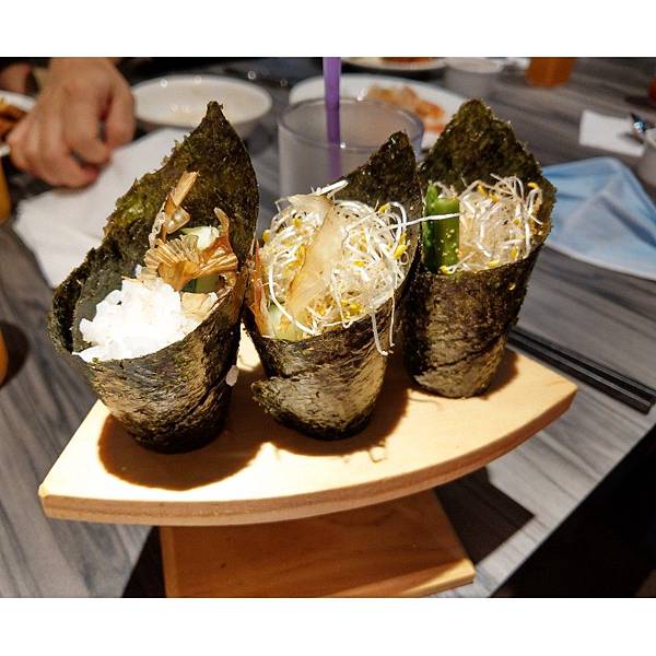 現場亦提供現做的手捲,有三種口味,鮮蝦、蒲燒曼、蘆筍。蒲燒是包飯的,其他都是苜蓿芽