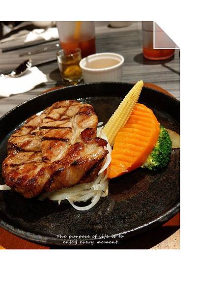 不得不說,排餐應該是今天唯一讓寶寶按個讚的料理。厚厚的豬排,咬起來Q彈有汁,不像夜市的豬排薄薄的又乾。這個梅花豬乍吃之下有松阪豬的錯覺,頗讓人驚艷 (•ө•)