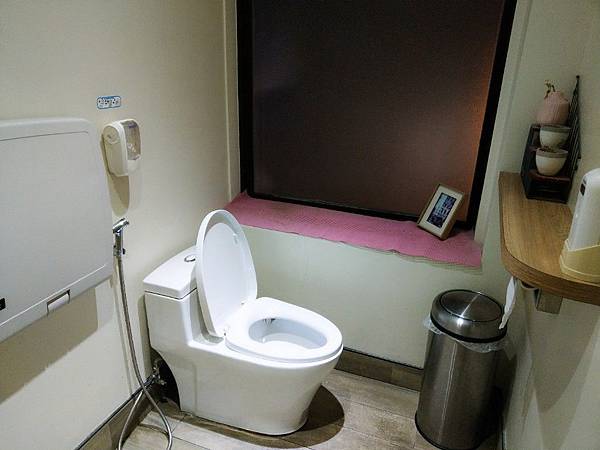 廁所應該算大間,男女各一間。馬桶後上方有酒精殺菌液可使用