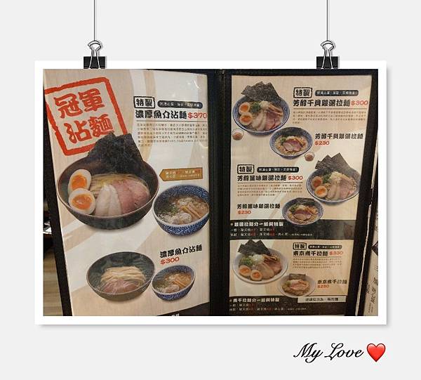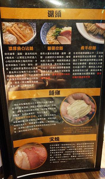 一共有三種湯頭,‘’濃厚魚介沾麵‘’、‘’雞湯拉麵‘’、‘’煮干拉麵‘’。