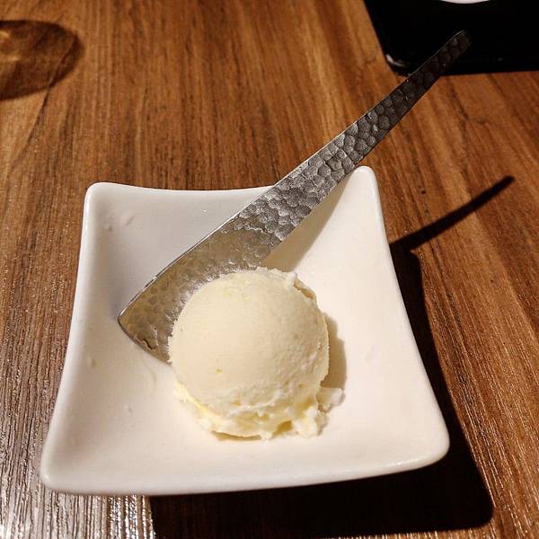 今天是一球牛奶口味的冰淇淋,每天的口味不一定喲。吃起來有點像雪酪,味道很濃郁