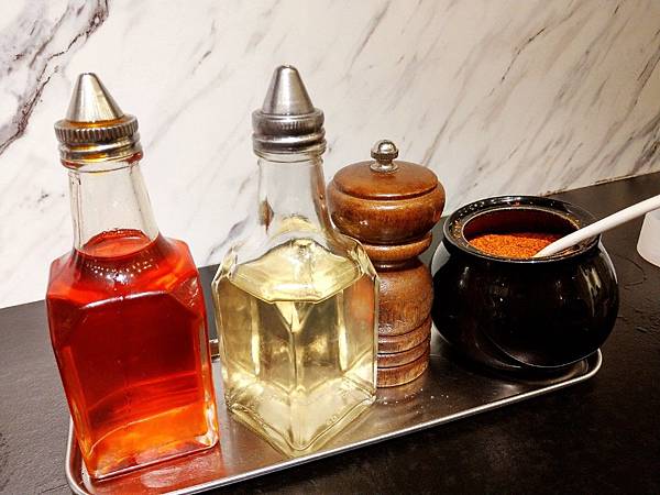 桌面上有簡單的調味料,愛吃辣的人可以嘗試這辣椒粉喔,味道挺不錯的