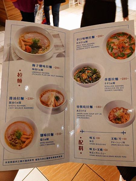 出餐口上方印有各式拉麵照片、價格跟品項