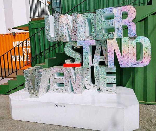 市集正門口便是一大片鐵皮,簡約的設計,寫上這一區貨櫃百貨的名稱" UNDER STAND AVENUE"