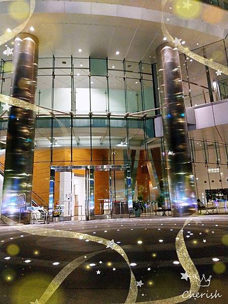 一樓大廳採用180度圓弧透明落地玻璃環繞,玻璃擦得亮晶晶,門口的立柱是銀色包膜,整體看起來簡約大氣,還有一種銀色夢幻的感覺