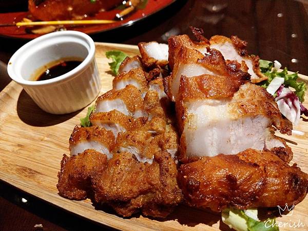 表皮炸得非常酥,裡面的肉很嫩,沒有油膩感,本身有一點點鹹度,熱熱吃可不沾醬。