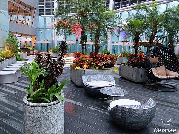 有高空花園,除了欣賞夜景外,當然也要有下午茶啦,所謂喝咖啡 聊是非,享受愜意的貴婦般時光呀