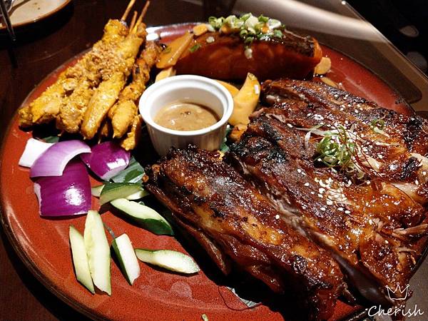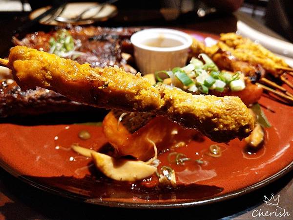 沙嗲烤雞肉串/嫩烤豬肋排/蕉葉照燒鮭魚