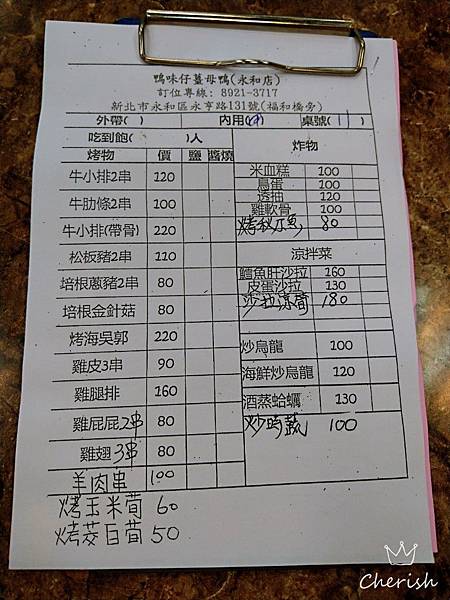 白色這張是配合烤蚵,上面有烤物、炸物、涼拌菜