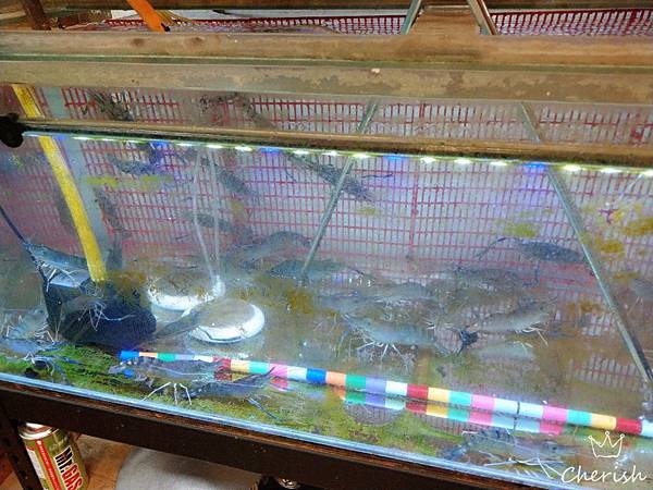 旁邊還有一缸活跳跳的泰國蝦,現撈先煮喔