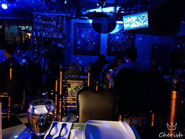 店內的燈光滿昏暗的,微弱的藍光帶有一點神祕氣息