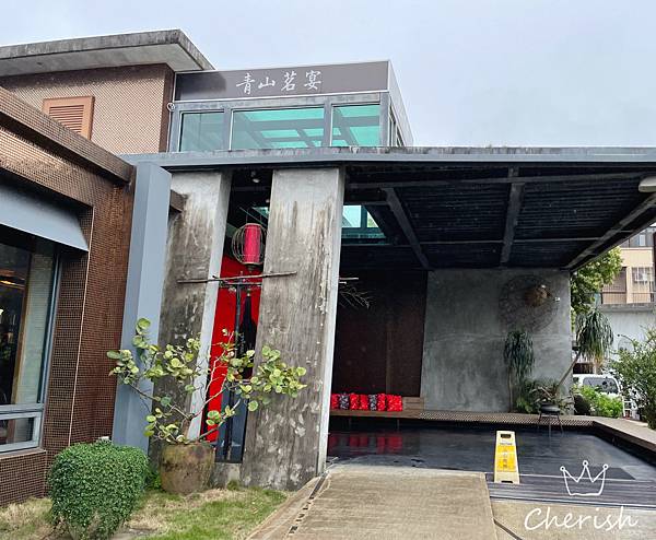 來到餐廳門口,門口大大的「青山茗宴」超吸睛,以白色的高雅簡潔作為設計風格,與藍天白雲相輔,雖然並不是那麼色彩,但卻很舒服,簡單、優雅、大方