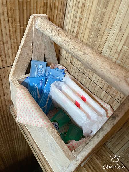 馬桶旁也提供衛生棉 、漱口水、牙線棒