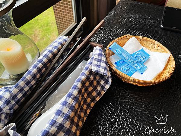 桌上除了餐具外,也放了牙線棒可以剔剔牙